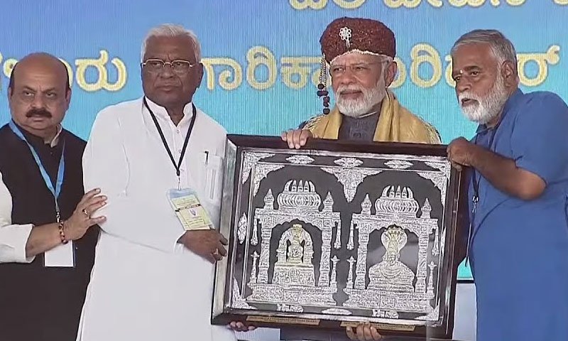 ತುಮಕೂರಲ್ಲಿ ಪ್ರಧಾನಿ ನರೇಂದ್ರ ಮೋದಿ ಅವರಿಗೆ ವಿಶೇಷ ಗಿಫ್ಟ್ . ಸಿದ್ದರಾಮೇಶ್ವರ ಪ್ರತಿಮೆ, ಗೋಸಲ ಚನ್ನಬಸವೇಶ್ವರ ಬೆಳ್ಳಿ ಫೋಟೋ ಹಾಗೂ ಅಡಿಕೆ ಪೇಟ, ಹಾರ ಉಡಗೊರೆ.